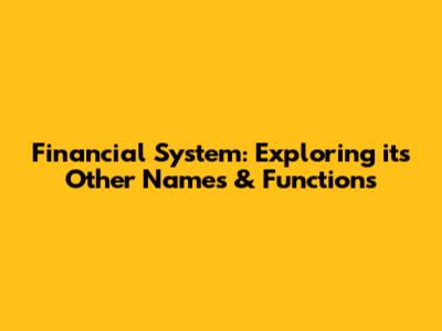 Financial System: Exploring Its Other Names & Functions