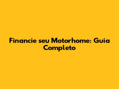 Financie Seu Motorhome: Guia Completo