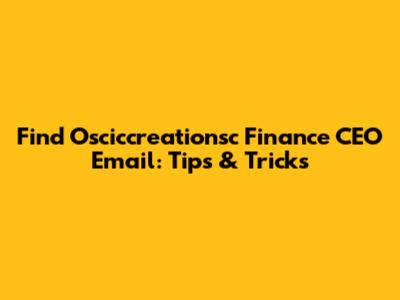 Find Osciccreationsc Finance CEO Email: Tips & Tricks