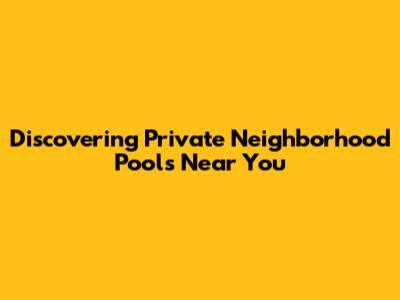 Hey guys! Ever get that craving for a refreshing dip on a hot day but don't want the hassle of a crowded public pool? We've all been there, right? You're searching for "private neighborhood pools near me" and wondering if there are any hidden gems in your vicinity. Well, you're in luck! Finding these exclusive spots can be a game-changer for your summer relaxation and fun. It’s not just about cooling off; it's about enjoying a more serene, less chaotic swimming experience. Think about it – no long lines for the slide, no fighting for a lounge chair, and a generally more peaceful atmosphere. This article is going to dive deep into how you can locate these fantastic private oases, what makes them special, and why they might be the perfect addition to your neighborhood's amenities. We'll explore the different types of private pools, from those managed by homeowner associations (HOAs) to exclusive community clubs, and even some creative ways people have gained access to them. So, grab your sunscreen and a towel, because we're about to embark on a quest to find your perfect poolside paradise, making those searches for "private neighborhood pools near me" a thing of the past. We'll cover the benefits, the potential drawbacks, and provide practical tips to help you uncover these aquatic havens. Get ready to upgrade your summer!