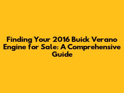 Finding a 2016 Buick Verano engine for sale can be a breeze with the right knowledge and approach. Whether you're searching online, at a salvage yard, or with a specialized retailer, always prioritize research, comparing prices, and verifying the engine's condition. Remember to consider your specific engine needs, your budget, and the installation process. By following these guidelines, you'll be well on your way to getting your Verano back on the road with a reliable and efficient engine. Happy hunting, and safe driving, guys!