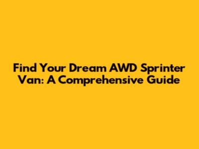 Find Your Dream AWD Sprinter Van: A Comprehensive Guide