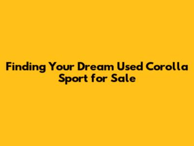 Find Your Used Corolla Sport: Deals & Buying Guide
