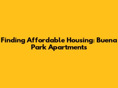 Finding Affordable Housing: Buena Park Apartments