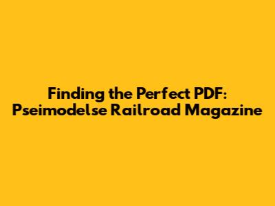 Finding The Perfect PDF: Pseimodelse Railroad Magazine