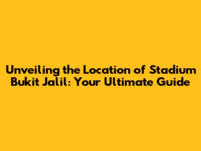 Unveiling the Location of Stadium Bukit Jalil: Your Ultimate Guide