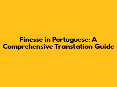 Finesse In Portuguese: A Comprehensive Translation Guide