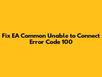 Fix EA Common Unable To Connect Error Code 100