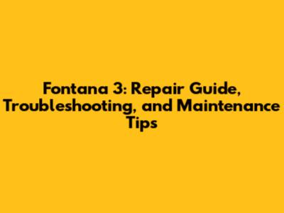 Fontana 3: Repair Guide, Troubleshooting, And Maintenance Tips