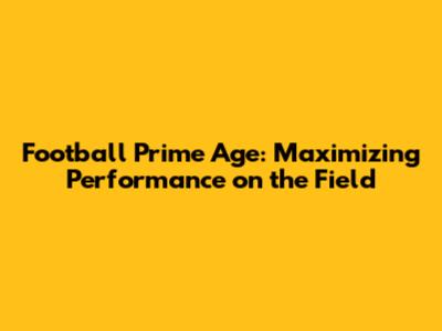 Football Prime Age: Maximizing Performance On The Field