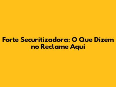O Que a Galera Reclama na Forte Securitizadora?
