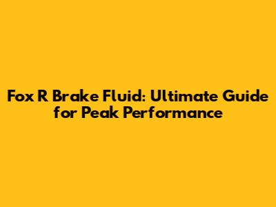 Fox R Brake Fluid: Ultimate Guide For Peak Performance