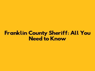 Franklin County Sheriff: All You Need To Know