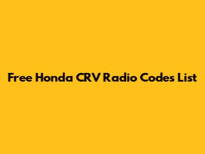 Free Honda CRV Radio Codes: Get Yours Now!