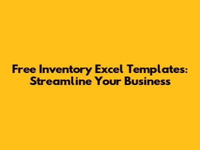 Free Inventory Excel Templates: Streamline Your Business