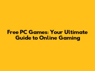 Free PC Games: Your Ultimate Guide To Online Gaming