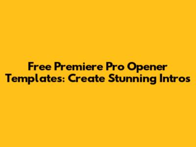 Free Premiere Pro Opener Templates: Create Stunning Intros