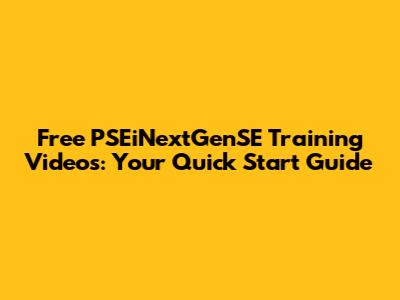 Free PSEiNextGenSE Training Videos: Your Quick Start Guide