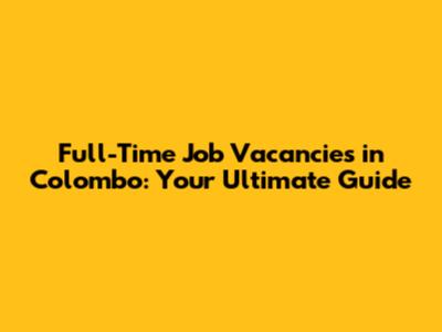 Full-Time Job Vacancies In Colombo: Your Ultimate Guide