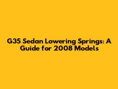 G35 Sedan Lowering Springs: A Guide For 2008 Models