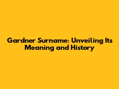 Gardner Surname: Unveiling Its Meaning And History