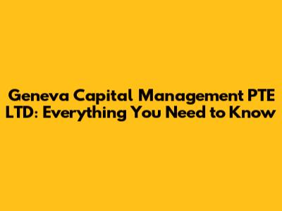 Geneva Capital Management PTE LTD: Everything You Need To Know