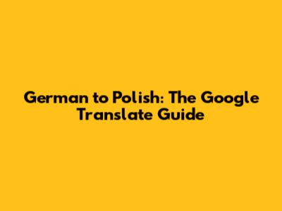 German To Polish: The Google Translate Guide