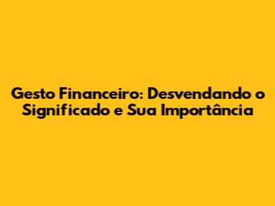 O Que É Gesto Financeiro? Uma Explicação Simples