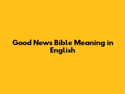 Good News Bible: Understanding Its Meaning