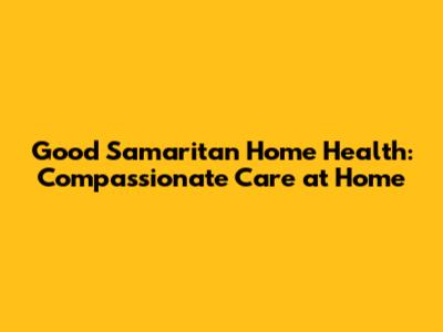 Good Samaritan Home Health: Compassionate Care At Home