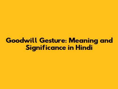 Goodwill Gesture: Meaning And Significance In Hindi