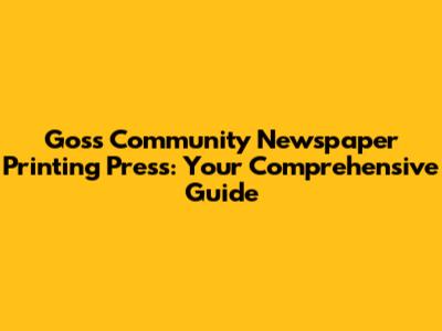 Goss Community Newspaper Printing Press: Your Comprehensive Guide