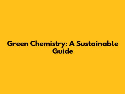 Green Chemistry: A Sustainable Guide