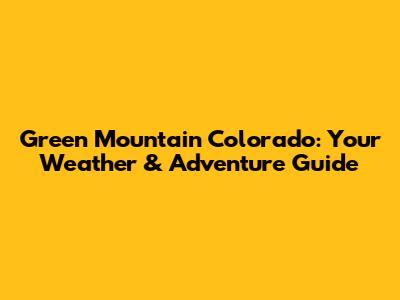 Green Mountain Colorado: Your Weather & Adventure Guide