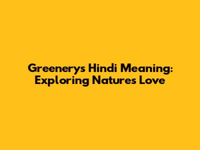Greenery's Hindi Meaning: Exploring Nature's Love