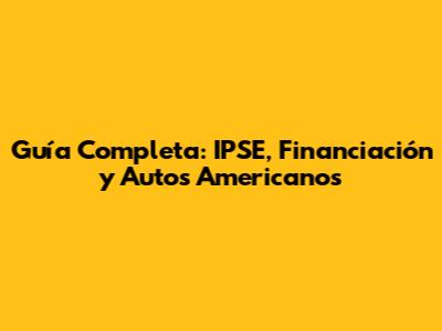 Guía Completa: IPSE, Financiación Y Autos Americanos