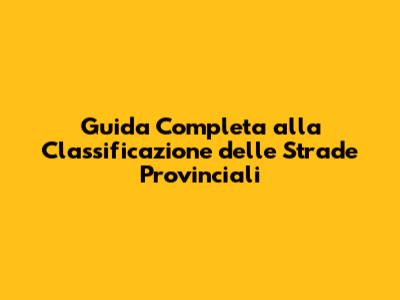 Guida Completa Alla Classificazione Delle Strade Provinciali