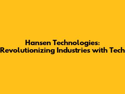 Hansen Technologies: Revolutionizing Industries With Tech