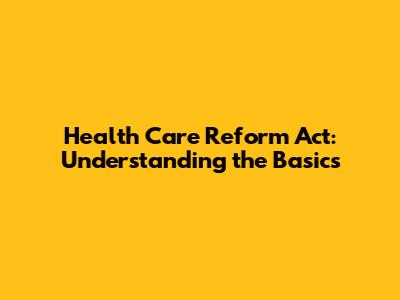 Health Care Reform Act: Understanding The Basics