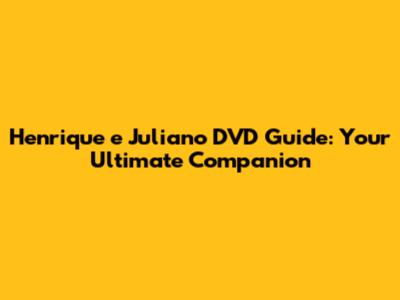 Henrique E Juliano DVD Guide: Your Ultimate Companion