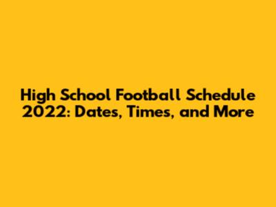 High School Football Schedule 2022: Dates, Times, And More