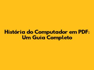 História Do Computador Em PDF: Um Guia Completo