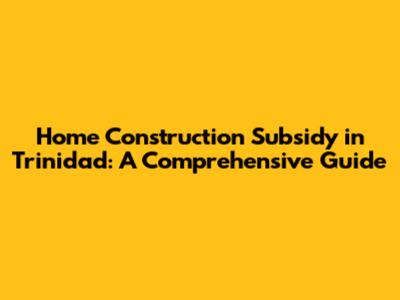 Home Construction Subsidy In Trinidad: A Comprehensive Guide