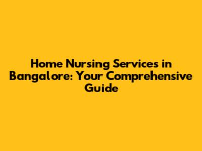 Home Nursing Services In Bangalore: Your Comprehensive Guide