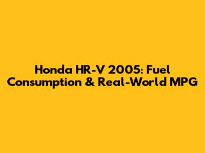 Honda HR-V 2005: Fuel Consumption & Real-World MPG