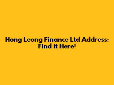 Hong Leong Finance Ltd Address: Find It Here!