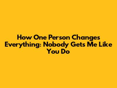 How One Person Changes Everything: Nobody Gets Me Like You Do