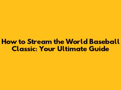 How To Stream The World Baseball Classic: Your Ultimate Guide