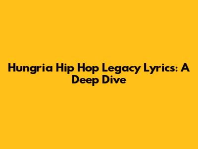 Hungria Hip Hop Legacy Lyrics: A Deep Dive