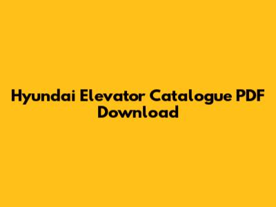 Why the Hyundai Elevator Catalogue PDF is Your Go-To Resource